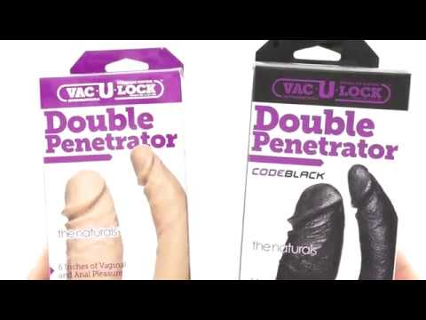 Double your pleasure with the Double Penetrator! Experience the amazing sensations of simultaneous vaginal and anal stimulation with this Vac-U-Lock Attachment featuring two 6 inch long phallic dongs. Use with any Vac-U-Lock set or accessory, can be worn with any harness for strap-on play, Phthalate-Free, Body-Safe Material. Proudly Made in America.